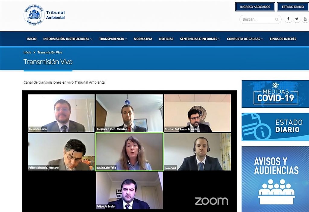 El Tribunal Ambiental de Santiago llevó a cabo la primera audiencia vía videoconferencia, agendada producto de la contingencia generada por la pandemia de Covid19. Los alegatos serán transmitidos en vivo a través del sitio web del Tribunal.