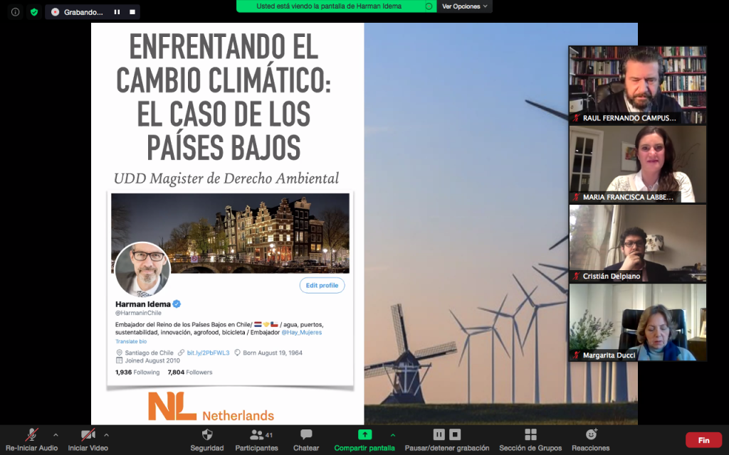 En el panel también participaron Javier Naranjo, subsecretario de Medio Ambiente, quien se refirió a la Política Ambiental de Chile; Margarita Ducci, directora ejecutiva de Global Compact de Naciones Unidas, con el tema Pacto Global y su rol en medio ambiente, Harman Idema, embajador de Países Bajos en Chile, quien abordó a la Política Holandesa en Medio Ambiente; y Pablo Badenier, exministro de Medio Ambiente, con el tema aspectos de política ambiental para Chile